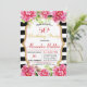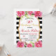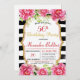 Snyggt Födelsedagsfest inbjudan med svart&vit strimlad bakgrund, omgiven av blommor och gyllene ram i mitten, gör det till en perfekt inbjudan som komplimenterar en oförglömlig kväll som tillbringas med närmast.