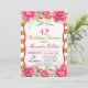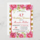 Snyggt Födelsedagsfest inbjudan med vit &guld strimlad bakgrund omgiven av blommor. Röda ram i mitten som stänger texterna med rött&guld, gör det till en perfekt inbjudan som komplimanger en oförglömlig kväll som tillbringas närmast.