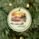 Den grå, runda keramiska keepsaksdekorationen har vattenfärgsdigital konstdesign av en söt, lat slättnad som flyter ner floden med #riverlife-text. Anpassa med namn, data och mer på baksidan. Vilket underbart sätt att minnas en speciell semester med familj och vänner!