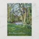 Ett vykort, med bankerna av floden Monnow på Alt-yr-Ynys på en skarp, ljus dag i tidigt vår. Det finns daffodils under träd och snödroppar i gräset, från en mjuk pastellmålning av Judy Adamson.