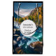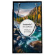 Giftväska med ett scenfoto med träd täckta berg i höst färg. En sjudande flod flyter runt en mängd sten. En stor vit fullt-hovring över måne.