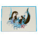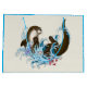 En söt bruna flodutter som leker i vatten med blommor i en gräddvit färgad.