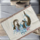 En söt bruna flodutter som leker i vatten med blommor i en gräddvit färgad.