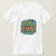 T-shirt-konstruktionen visar texten "River Roamer" i fet, färglöst brev, med en detaljerad illustration av en flodscen i bakgrunden. Utformningen är perfekt för alla som kärlek utomhus och som har tid på vatten.