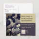 Är ditt spa-, yoga-studio eller semestercenter öppnat igen? Behöver du ett vykort för anpassadets meddelande att skicka till kunder? Det här vykortet med en bild av floden sten i avslappnande muterade toner kan hjälpa dig att få ut ord till kunderna. Anpassa meddelandena till dina kunder, lägg sedan till logotypen och uppdatera informationen och returadressen för ditt spa. Sedan är du inställd. Kortet är i ton grått, mauve, äggplanta och tan för att komplettera floden sten.