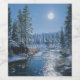 Snygg vinterskog, med snö täckte gräs träd i en vacker mousserande flod. Det finns ett vackert, starkt fullt måne i himmel. Anpassa med din text, även underbar till jul eller till valfritt vinter-Firande.