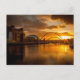 En gyllene solnedgång i silhuetterna Tyne Bridge och Millennium Bridge medan Östersjön och Sage Gateshead lyser