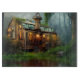 En Steampunk-workshop i stil på en mossy flod-bank - en digital konsthämgskartong skapat med AI-software