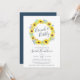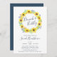 Brunch-inbjudningarna i land chic har en vattenfärgad solblomma, grönt löv och små marinblå knoppar som omger "brunch & bubly" i handskriven chic. Anpassa med din möhippa brunch-information under.