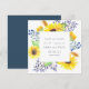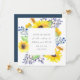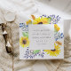 Våra flödesfält sparar datumkortet ramar dina uppgifter om nyckel bröllop, inklusive datum och plats, i en lush blommigt gräns av solblommor av rustisk gult, grönt löv och små blåa blomknoppar. Anpassa med namn, datum och plats för bröllop med hjälp av fält.