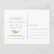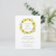Blommigten med eleganterna vattenfärger sparar "spara datumet" på vykortssidan i chicen och skriver i en andedräkt med vattenfärgade solblommor av gult, vibration i grönten och små sjöblå blomknoppar. Koordinerar vår samling av flödesfält för land chic bröllop. Brevkort återförs om du vill visa ytterligare information om hur du sparar datuminformation, inklusive webbplatsen bröllop, med returadress och utrymme för mottagaradressering.