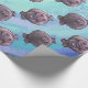 Det gråa flodhästhuvud- och svanmönster som slår in papper, presenterar vår original- konst av våra begåvade barns illustratör av en rolig flodhäst framifrån och den roliga flodhästen från baksidaen i ett roligt seamless mönster på vår häftet texturerade blåttbakgrund.