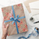 Barn-röd blommigt-mönstrad presentförpackning och bruna bakgrunder kan vara personlig till vilken färg som helst.