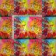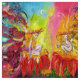 Whimsical,colorful,Vibrant inverterad blomma älvor i måne-ljus.Akryl-vattenfärgsmålning med guld-gnistor och iridescent färg. .En vibrerande magisk blomma i gult av ljusstark rosa orange, färg med gyllene och silver folie.