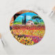 Toscansk landskapsbild, livlig, uttrycksfull skönhet av italiensk landsbygd och färgrika blomsterfält i ljust gult orange, rosa, fuchsia, lila, rött, grönt, svart färger, vackra sommarängar, cypress- och olivträd, rustikt gammalt bondgårdshus under blå himmel. Akrylmålning på duk .