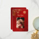 Det här kinesiska bröllop-kortet är ett tack för att du har guld konstblommor, ett lyckotecken för den konstnärliga dubblan i guld och "tack" ord I ett modernt handskrivet skript på en röd, strålande bakgrund. Med ett tack från personligt bröllp får du texten, fotot och datum för namn och bröllop.