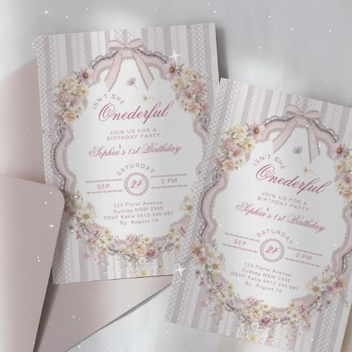 Floral 1st Birthday Bow Photo Invitation Inbjudningar