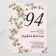 Floral 94th Birthday Invitation in Blush Pink Inbjudningar
