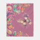 Inspired by watercolor and the Paisley pattern, this design features a corner floral paisley design with a paisley butterfly on a dusky pink background fleece blanket.