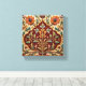 Floral ornament with symmetrical design, featuring stylized flowers, leaves, and tendrils in a rich color palette of reds, oranges, greens, and blues, set against a cream-colored background.