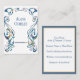 This exquisite profile card features a prominent, ornate border in the Art Nouveau style, characterized by its flowing, organic lines and stylized floral motifs. The border, rendered in shades of blue, green, and gold with a distressed or textured appearance, frames a central, lighter cream-colored area designed for writing. The overall aesthetic evokes a vintage or classical feel, making it suitable for various occasions requiring a touch of elegance.