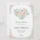 Floral invitation card. Features pastel flowers in a teacup, with text "Ready to Bloom" and event details. Soft, elegant, and inviting design.