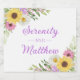 Celebrate your special day with this watercolor floral wedding wine label featuring cheerful sunflowers, soft white daisies, and delicate wildflowers in pink, purple, and green tones. Personalized with the bride and groom’s names, this elegant boho chic garden design adds a charming, romantic touch to your spring and summer wedding. Perfect for garden parties, outdoor ceremonies, or shabby chic-themed celebrations, this wine label pairs beautifully with invitations, place cards, napkins, and other items from your floral wedding suite, creating a cohesive, polished look for your big day.