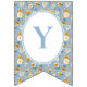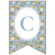 Printed on high-quality cardstock with pre-cut swallowtail flags — simply string together and display. A charming addition to any blue floral or vintage carriage–themed baby shower.