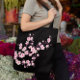 Floral Cherry Blossoms Pink Black Tygkasse