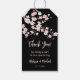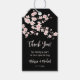 The top of the tag is decorated with a beautiful pink cherry blossom branch on a black background. "Thank you" is written in an modern handwritten script.