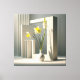 Ein stilles Zusammenspiel aus Natur und Struktur: Zwei gelbe Narzissen und eine weiße Hyazinthe stehen in einem schlichten weißen Gefäß, eingebettet in eine geometrische Architektur aus Licht und Schatten. Die Komposition verbindet florale Leichtigkeit mit klarer Formensprache und schafft eine ruhige, moderne Atmosphäre. Ideal für Designliebhaber, minimalistisch eingerichtete Räume und alle, die visuelle Klarheit mit poetischer Tiefe suchen