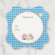 Design: Refreshing blue gingham plaid with a botanical floral and egg motif.