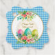 Blue Gingham Easter Favor Tags - Scalloped Floral Easter Egg Gift Labels - Custom Blue & White Plaid Happy Easter Tags for Treats & Party Favors.