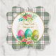 Add a touch of farmhouse charm to your holiday celebration with these Custom Green Plaid Easter Favor Tags. Featuring a unique scalloped bracket shape, these tags combine a classic sage green and burgundy plaid background with a lush, watercolor floral design. The central motif showcases vibrant Easter eggs tucked among pink roses and white lilies.