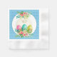 Design: Refreshing blue gingham plaid pattern with a hand-painted floral and egg motif.