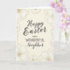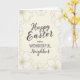 This greeting card features a seasonal message centered on a creamy beige background, setting a soft springtime scene 🌷. The main line, “Happy Easter,” sits near the top in deep charcoal lettering with smooth, flowing strokes that feel like a warm note between close friends. Beneath it, “FOR A WONDERFUL” appears in all caps, with “WONDERFUL” standing out in a warm taupe tone that reads like an extra-sincere emphasis for a valued neighbor. The word “Neighbor” follows below in matching deep charcoal, returning to the same flowing style and keeping the eye moving gently down the page. Around the text, a thin border of stylized floral outlines forms a quiet frame, like a garden ringed around a shared greeting 🐰. The flowers are drawn in golden-beige linework with slightly richer centers, adding small points of depth without crowding the message. In the corners and along the edges, the floral shapes repeat evenly, creating a tidy frame that encloses the centered wording.