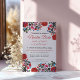 This Floral Elegant Colorful Fiesta Spanish Wedding Invitation design features bold, vibrant floral illustrations in rich reds, blues, and pinks, inspired by traditional Mexican folk art. The floral motifs are arranged symmetrically in the top and bottom corners, framing the blank center space perfectly for text. The subtle textured background adds depth and warmth, making it ideal for wedding invitations or festive stationery with a colorful, cultural flair.