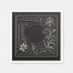 A delicate floral line‑art frame with intricate white detailing on a deep black background. The elegant symmetry adds a sophisticated and stylish touch to any table setting.