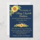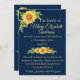 An elegant announcement of a bereavement card. Use the card to advise family and friends of a love ones death and the funeral arrangements. Rustic yellow floral watercolor sunflowers on a dark blue background with cream text. Add any extra details on the reverse and add your own details as needed . Sorry for your loss.