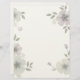 A soft and elegant floral border design featuring pastel flowers in shades of lavender, cream, and pale sage. The blossoms are placed gracefully in each corner, leaving the center open for text or artwork. Gentle green leaves and subtle shading create a balanced, airy composition