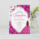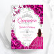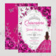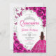 Floral Fuchsia Pink Silver Quinceanera Inbjudningar