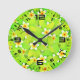 Floral Green Leaves Yellow Flowers Pattern Rund Klocka