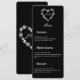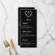 Add a touch of dramatic elegance to your reception with this stunning black wedding menu from our Black & White Wedding Collection. Featuring a sophisticated chalkboard-style black background, this card showcases your menu courses in crisp white minimalist typography. The design is crowned with our signature romantic heart monogram and custom initials. Perfect for high-end, modern, or evening weddings, this menu card ensures a luxurious dining experience for your guests. Fully customizable with your personal menu details and wedding initials.