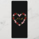 Make a bold and sophisticated statement with this elegant wedding menu card. Featuring a striking deep black background, this design creates a luxurious canvas for the refined gold-toned typography. At the top, a romantic heart-shaped wreath of delicate red roses and pink blossoms frames the couple's initials, adding a touch of floral charm to a modern aesthetic.