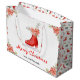 This fun and festive gift bag can be personalized with your name, relation or title. It features a watercolor red ice skating boot and beautiful floral red poinsettia flowers. The text combines handwritten script and sans serif fonts for a stylish and modern look. This is perfect for Christmas gifts and party favors.