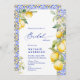 Floral Lemon Mediterranean Blue Tile Bridal Shower Inbjudningar