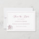 This elegant Save the Date card features a soft dusty rose tone that sets a warm, romantic mood. A touch of white keeps the design clean and airy, enhancing its modern minimalism. The back is adorned with a delicate floral print, while the front showcases a single, hand‑painted blossom that echoes the artwork behind it, creating a cohesive and artistic look. The calligraphy script title adds a refined, graceful touch. Together, these elements form a beautifully balanced announcement that introduces your wedding day with subtle elegance and charm. The reminder has easy editable template - you can change the text, font, and color palette while keeping the professionally designed layout.