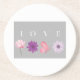 Add a touch of elegance to any table with this floral LOVE typography stone coaster, featuring delicate flowers and a soft butterfly arranged within a modern grey panel. The natural stone texture pairs beautifully with the romantic botanical design, making it both decorative and functional.