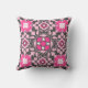 Kastkudde i ett Art Deco-marockanskt plattsättningsmönster baserat på stiliserade blommor och blad - fuchsia rosa, silvergrå och mjuk rosa, accentuerat med vitt