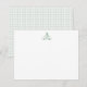 Floral Monogram with Green Gingham Note Card Anteckningskort